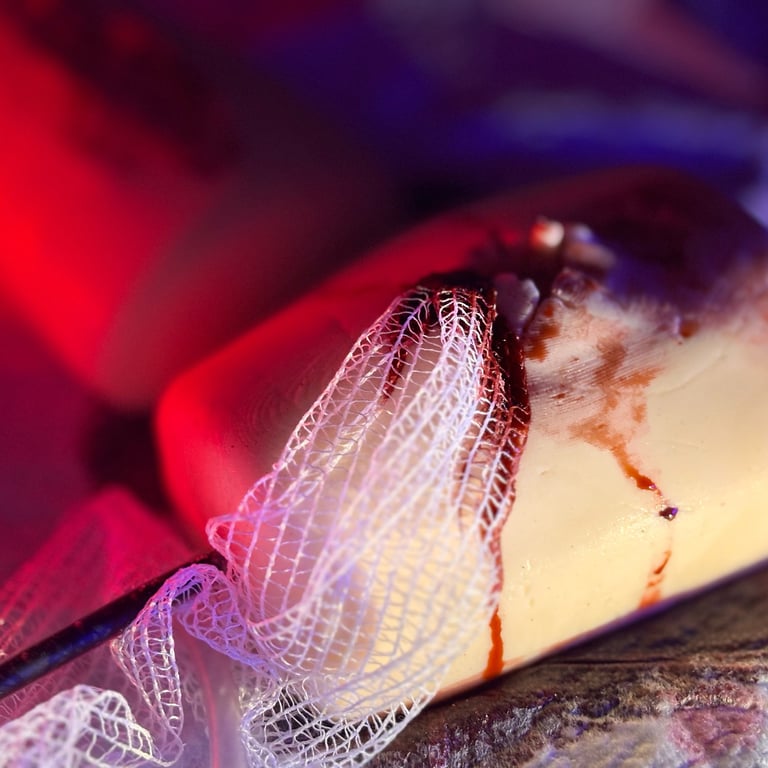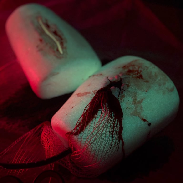 Dostępne są rany postrzałowe i cięte. Na życzenie jesteśmy w stanie wyprodukować inny model rany. W ofercie posiadamy również trenażery świecące w ciemności (luminescencyjne).